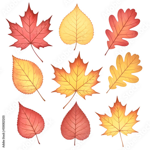 Collection of Vibrant Autumn Leaves in Warm Colors on Transparent Background