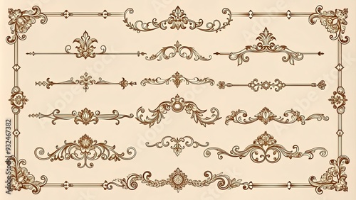 Collection of vintage ornamental decorative dividers and frames perfect for adding a touch of elegance to designs