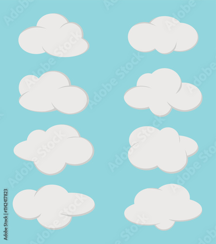Collection of white cloud illustrations. Vector set of cartoon clouds in flat design.Cloud.
