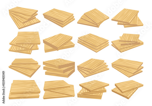 Collection of wood logs for lumber industry. Woodworking material. Wood planks. Woodwork illustration