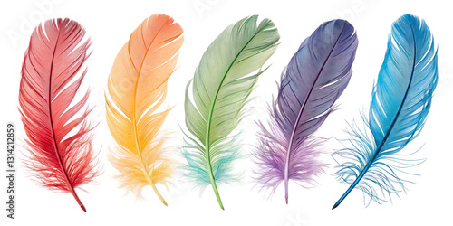 collection set of feathers isolated on white background png