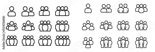 Collections of diverse vector flat illustrations depicting groups of people in various configurations and arrangements for use in design projects
