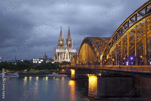 Cologne Cathedral and Hohenzollern Bridge in evening