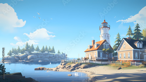 colonial architecture winter and a lighthouse by the coast abstract decorative painting