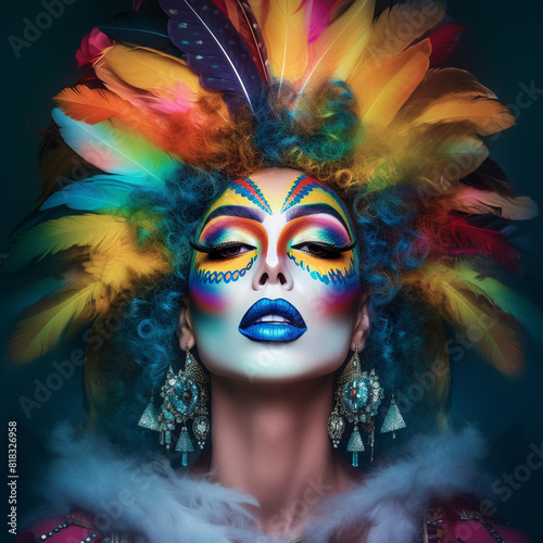 body art, woman, artistic, creative, colourful, make-up, fashion, beauty, expression, vibrant, detailed, portrait, face painting, costume, styling, bold, aesthetic, body painting