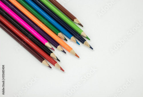 white, white background, pink, green, yellow, isolated, crayons, black, orange, blue, art, artist, school, children, colours, colourful, education, pattern, background, write, writer, creative, creativity, shade
