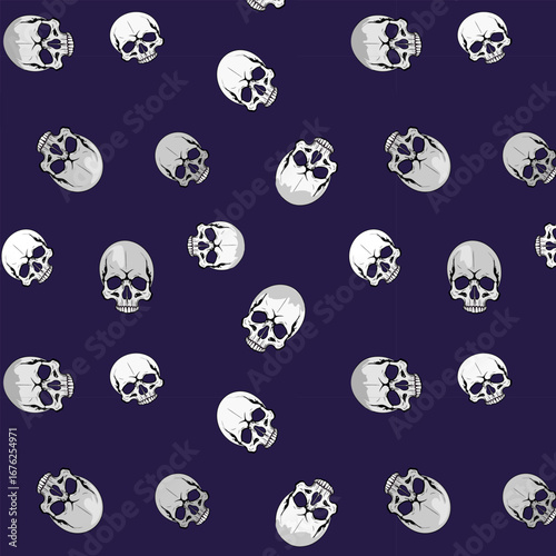 Colored background with skulls.Vector seamless pattern with white skulls on a blue background.