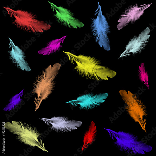 Colored feathers isolated on black background
