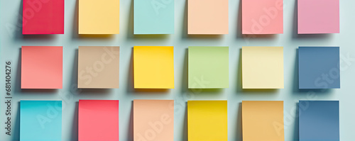 Colored post it notes messages. Collection or variation of different color sheets of note papers.