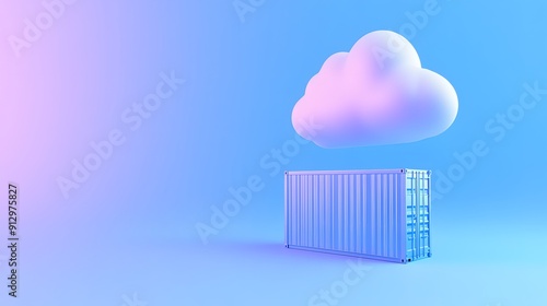 Colorful 3D illustration of a cloud above a shipping container, representing cloud computing and data storage in a modern digital concept.