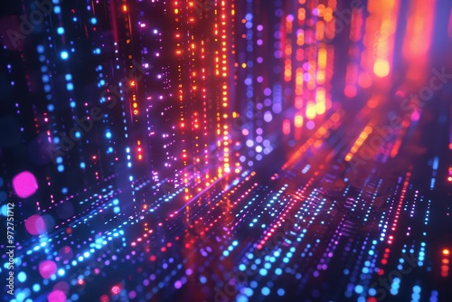 Colorful abstract digital art with vibrant light trails and dots reflecting a futuristic technology theme.