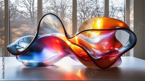 sculpture, glasses, abstract, colourful, design, art, light, curve, modern, creative, decor, aesthetic, shape, texture, elegance, contemporary, artistic, beauty, form, vibrant, semitransparent, wave, installation, craftsmanship, unique, fluidity, visual, harmony, space, gallery, exhibit, aglow, innovation, style, ambience, showcase, display, inspiration, perspective, colours, movement, environment, interior