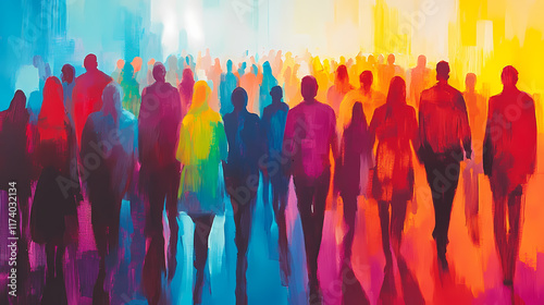 colourful, abstract, painting, crowd, people, glimpse, illustration