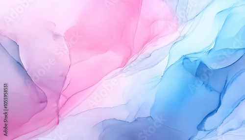 Colorful abstract painting with soft strokes in shades of pink, blue, and lavender on a fluid background.