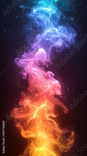 Colorful abstract smoke swirling through a dark cosmic backdrop with hints of stars