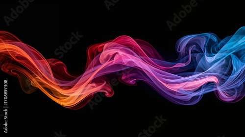Colorful Abstract Smoke Wave on Black Background