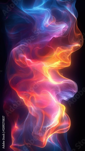 Colorful Abstract Smoke Waves in Blue, Orange, and Pink Hues