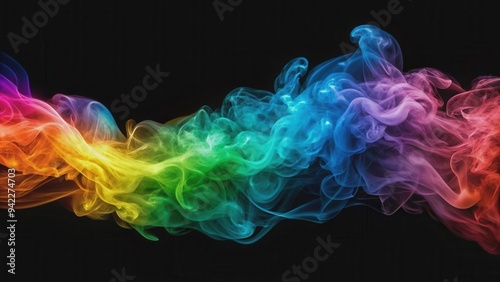 Colorful abstract smoke waves on black background, vibrant render , smoke, waves, abstract, colorful, black background,render