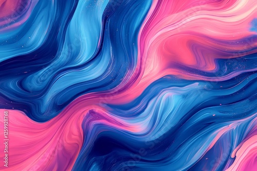 Colorful abstract waves form a vibrant swirl of blue and pink hues in a dynamic artistic composition