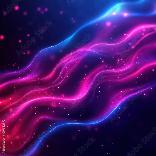 Colorful abstract wavy lines with glowing particles in blue and pink hues, perfect for backgrounds and designs.