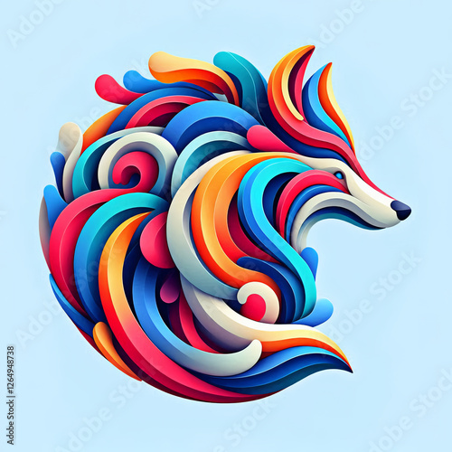 Colorful Abstract Wolf with Dynamic Depth and Organic Flow