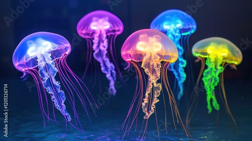 jellyfish, aquatic, marin, wildlife, ocean, colourful, glowing, transparent, tentacle, underwater, serene, nature, fluid, aethereal, illumination, high-coloured, bioluminescence, creature, soft, background, beauty, peaceful, mesmerizing, silhouette, wave, light, aquarium, ecosystem, elegant, vibrant, motion, tranquil, depth, biology, species, environment, dark, charme, marine life, water surface, fascination, natural world, oceanic, habitat