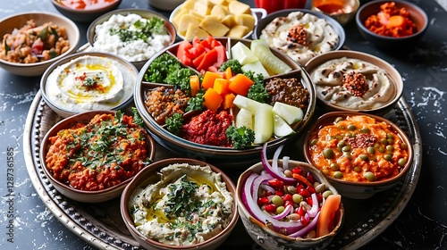 Colorful and Vibrant Assortment of Dishes on Silver Platter for Festive Dining Experience