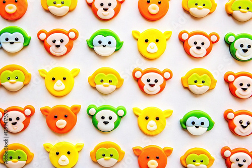 animal, animal, face, face, pattern, colourful, bright, cute, adorable, monkey, monkey, orange, yellow, green, happy, cheerful, playful, fun, joy, delight, whimsical, childlike, children, children, baby, baby, toddler, toddler, sweet, candy, decoration, decor, background, texture, design, art, craft, illustration, image, photo, arrangement, grid, repeat, seamless, vibrant