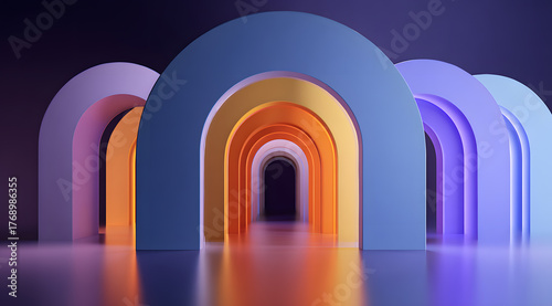 arch, abstract art, purple, yellow, innovation, fashion, space, background, display, interior