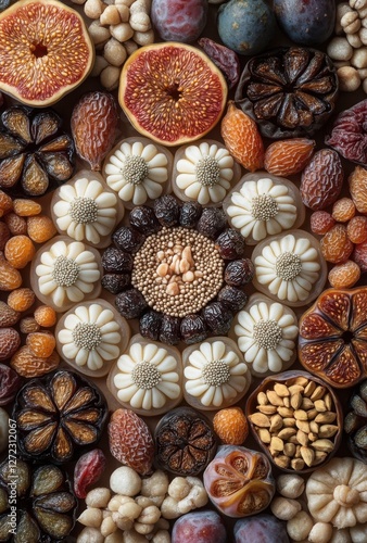 dried fruit, healthy snack, food photography, floral pattern, intricate pattern, healthy eating, floral pattern, healthy lifestyle