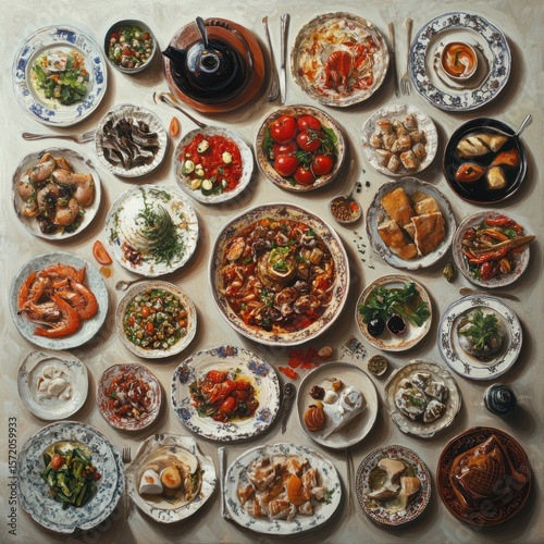 food, dish, plate, meal, cookery, variety, seafood, meat, vegetable, soup, spice, appetiser, drink, delicious, colourful, artistic, arrangement, display, eatery, dinner, lunch, table, widener, tasty, appetising, epicure, picnic, buffet, exotic, international, regional, modern, traditional, presentation, photo, still life, realistic, art, exhibition, gallery, picture, photo, plating, visual, composition, detail