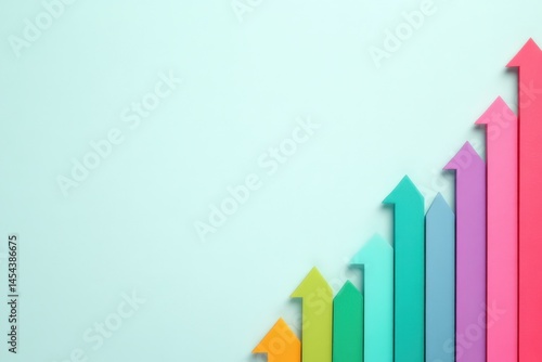 Colorful arrows of various heights point upward, symbolizing growth, progress, and positive development on a pale background.