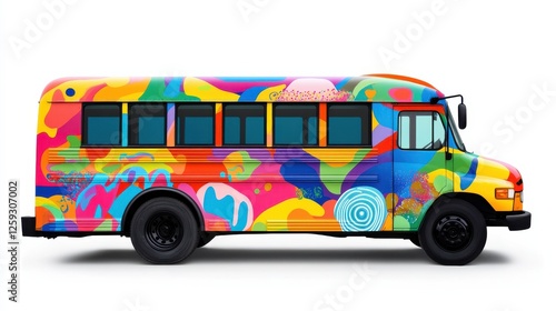 Colorful Artistic School Bus with Vibrant Abstract Patterns