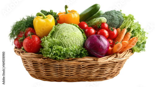 Colorful assortment of fresh vegetables in a woven basket, perfect for healthy recipes and meal prep.