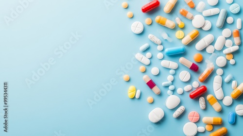 Colorful Assortment of Pills and Capsules on Blue Surface