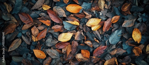Colorful autumn leaves scattered on a forest floor creating a natural backdrop with ample copy space for seasonal text or messages