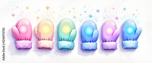 mitten, colourful, soft, fuzzy, glowing, pastel, winter, children, warmth, cute, cosy, fashion, style, bright, decorative, illustration, clip art, pink, blue, green, violet, hi-res, detailed, no people, neon, high-quality, playful, cheerful, design, creativity, art, star, light, gentle, vibrant, modern, fun, accessory, gift, trendy, adorable, digital, quality, 1