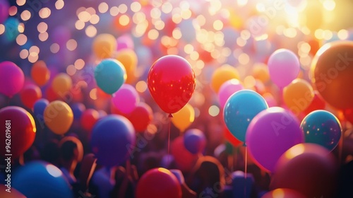 balloon, colourful, red, blue, pink, yellow, orange, purple, party, celebration, festive, joy, happiness, fun, crowd, people, blurred, background, bokeh, light, bright, vibrant, cheerful, event, gathering, occasion, amusement, joyous, blithe