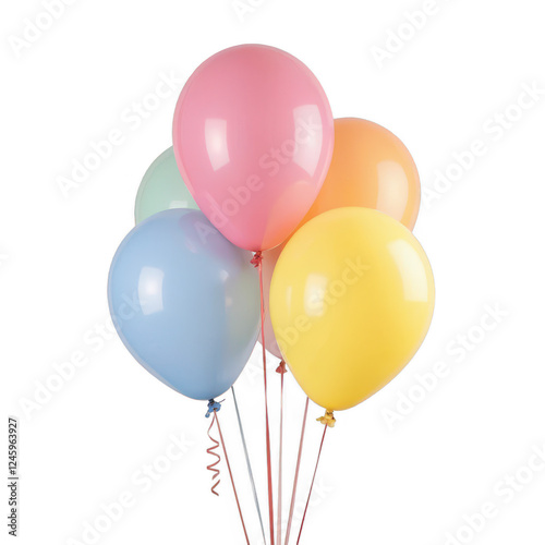 Colorful balloons in soft pastel shades, perfect for celebrations, adds a cheerful touch to any festive occasion. Isolated on white background or PNG