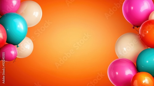 Colorful balloons on an orange background, perfect for celebrations and festive occasions, adding joy and vibrancy to any event.