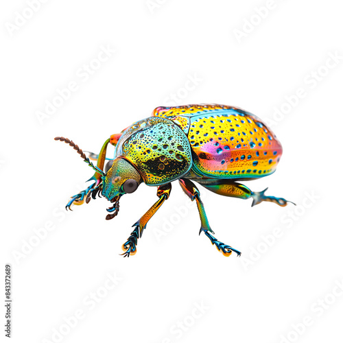 Colorful Beetle with Shiny Exoskeleton Isolated on White Background