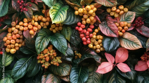 Colorful Berries and Lush Leaves Background