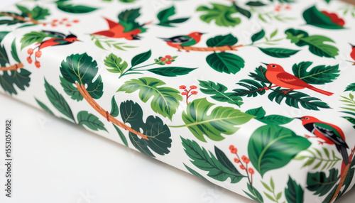 wrapping, paper, decorative, bird, pattern, green, leaf, glossy, finish, gift, enclosed, nature, design, colourful, print, festive, closeup, botanical, tropical, red, foliage, plant, illustration, holiday, vibrant, colours, smooth, texture, creative, seasonal, decoration, motif, natural, theme, material, environmentally friendly, artistic, detailed, bright, presentation, floral, sheet, ornamental, surface, cardboard box, art, style