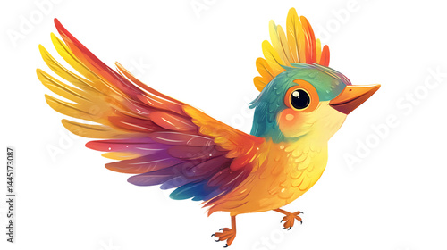 bird, wing, flight, colourful, vibrant, wildlife, feather, animal, nature, art, cartoon, feature, aerial, landscape, fauna, wingspan, movement, playful, species, whimsy, sunlight, stylize, capture, beautiful, creature