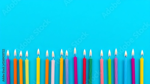 wax, straight, overhead, candle, birthday, colourful, view, background, celebration, studio, fire, arrangement, line, event, vibrant, blue, light, flames, party, decoration
