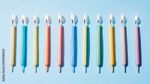 Colorful birthday candles burning in a row, celebrating joy and light