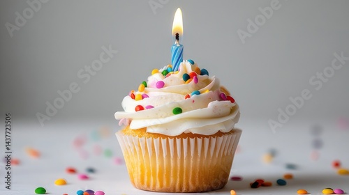 Colorful Birthday Cupcake with Candle and Sprinkles on White Background – Celebration Concept