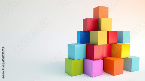 Colorful blocks arranged in creative pyramid shape, showcasing vibrant hues and geometric forms. This playful composition evokes sense of imagination and fun