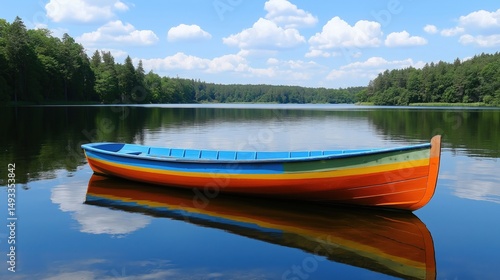 Colorful boat on calm lake