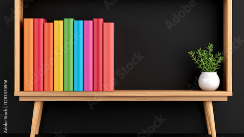 Colorful Bookshelf with Plant, Minimalist Design